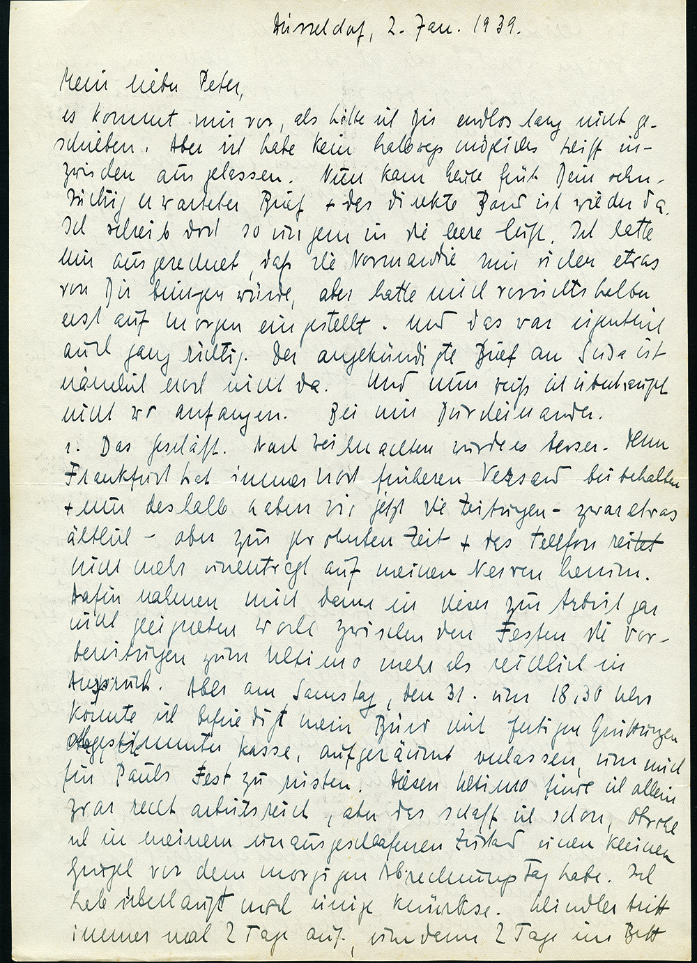 - Carbon copy of a letter typed and sent by Johannes to Elfriede from Philadelphia, January 2, 1939.
