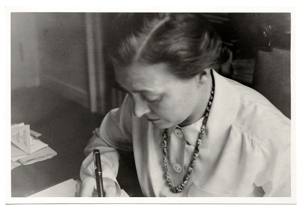 - Elfriede writing at home in Düsseldorf , December 1938.