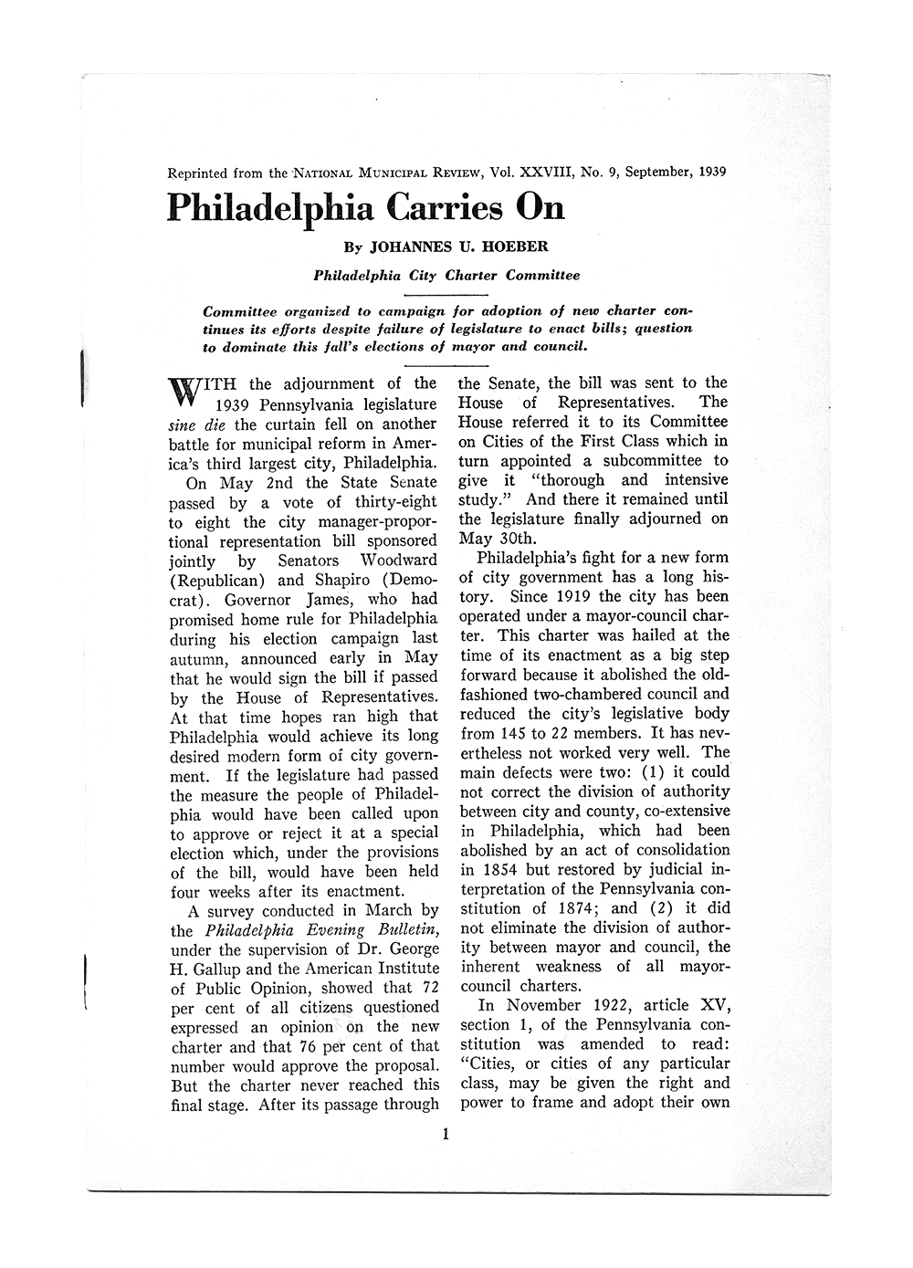 - Johannes’ first professional article published in the National Municipal Review nine months after his arrival in the U.S.