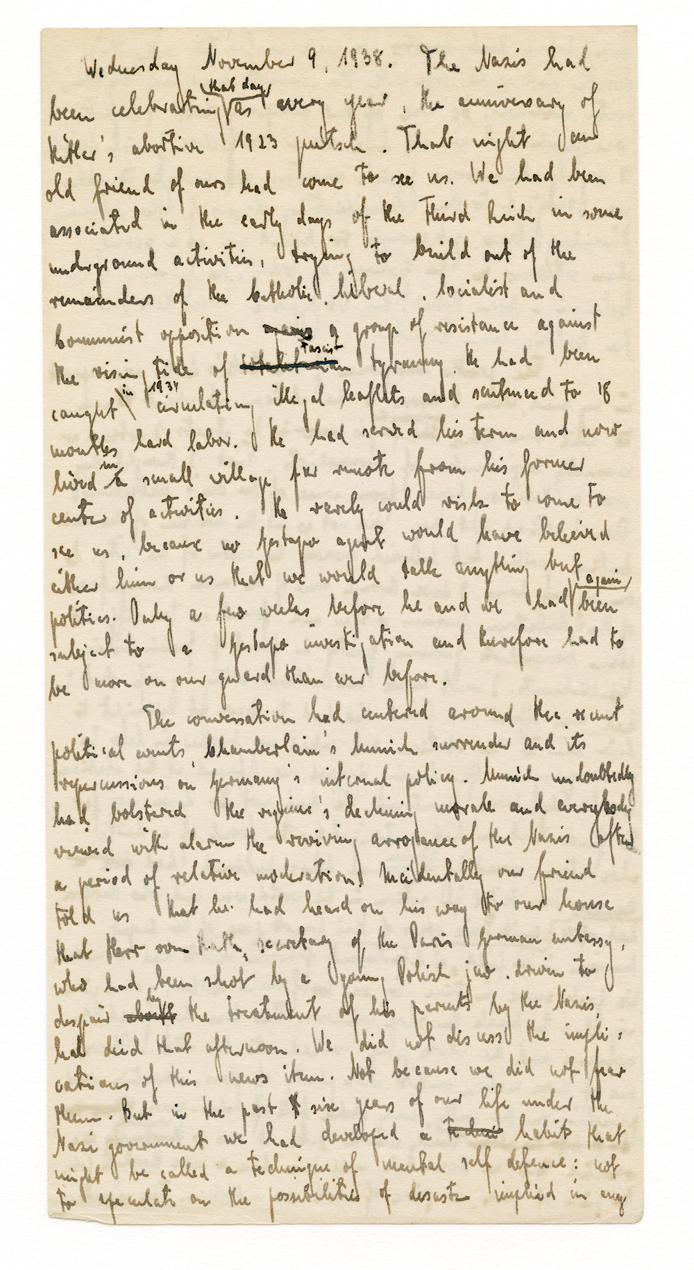 - After Johannes fled to Switzerland on November 12, 1939, he wrote this account of the Nazi depredations on Kristallnacht. He wrote in English, presumably to make it harder for German police to read it.